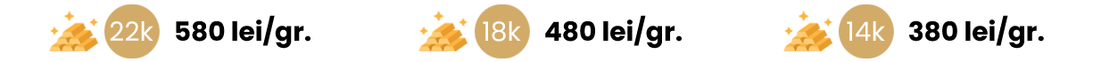 Acceptăm orice fel de bunuri din aur: bijuterii vechi sau deteriorate, monede din aur sau părți din bijuterii. Îți oferim transparență totală și nu impunem condiții care să influențeze oferta de preț!